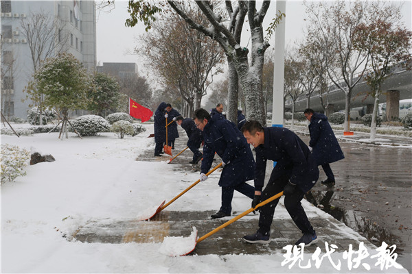 為確保場區(qū)道路暢通,徐州、連云港機場組織機關(guān)工作人員手拿鐵鍬、推雪板和掃把等工具,頂著寒風(fēng)、躬著身子,對外場周圍路段鏟雪。在黨員突擊隊旗幟的照耀下,全體除冰雪隊員形成一個充滿凝聚力和戰(zhàn)斗力的堡壘。