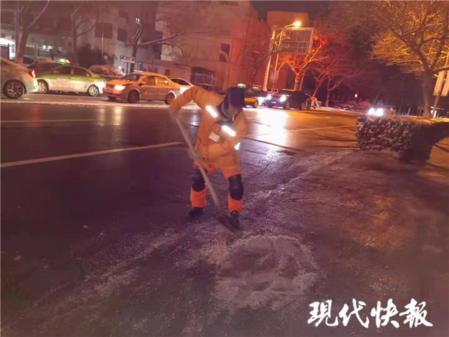 “大家一直奮戰(zhàn)至上半夜,下半夜我們還派了值班人員,隨時有情況隨時出動。”徐州市環(huán)衛(wèi)處工作人員介紹,雪情就是命令,大家集結速度非???,凌晨時市區(qū)主次干道、高架、橋梁上的積雪均已清除干凈,保證了正常通行,部分慢車道和人行道,環(huán)衛(wèi)工人們還在繼續(xù)值守除冰融冰。