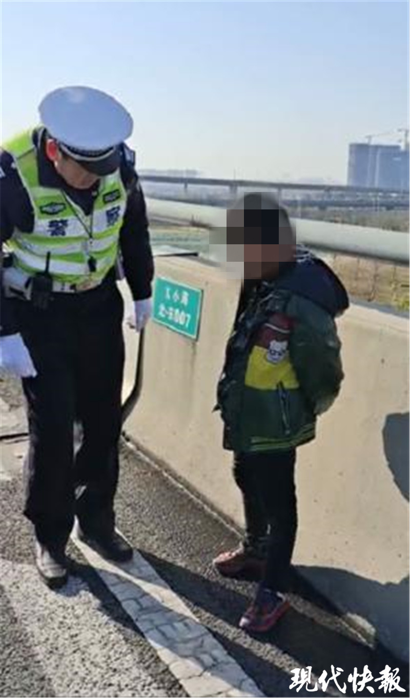 “當(dāng)時(shí)車(chē)流量比較大,我們發(fā)現(xiàn)他的時(shí)候,他是沿著高架路的路邊在走,周?chē)能?chē)輛都趕緊避讓?zhuān)容^危險(xiǎn)。”三大隊(duì)機(jī)動(dòng)中隊(duì)中隊(duì)長(zhǎng)王志清告訴現(xiàn)代快報(bào)記者,10點(diǎn)18分左右,他們終于在高架上找到了這名男孩,并將其安全帶離,排除了這起重大交通事故隱患。