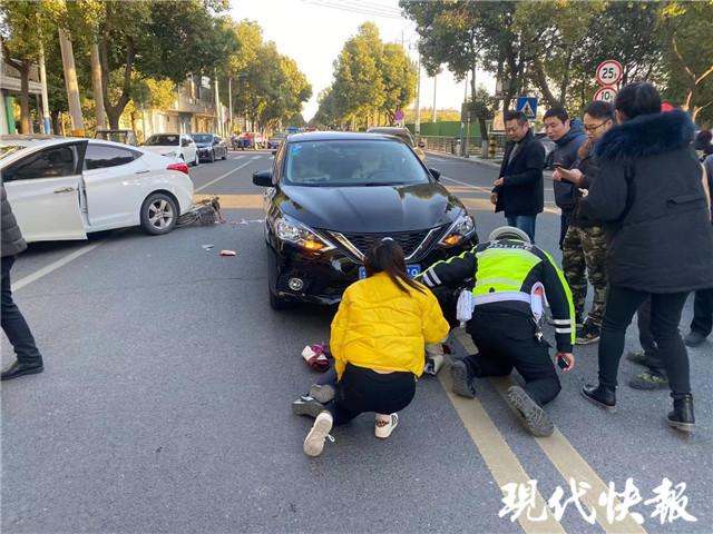 去年12月15日早晨7點(diǎn)50分,在常州經(jīng)開區(qū)橫林鎮(zhèn)順通路路口,一名騎自行車的老太太與路側(cè)臨時停車泊位內(nèi)一輛正在倒車的白色現(xiàn)代轎車發(fā)生剮蹭,老太太倒在機(jī)動車道內(nèi),隨即被同方向駛來的黑色尼桑轎車卷入車底。駕駛警車巡邏至此的經(jīng)開區(qū)公安分局橫林交警中隊(duì)中隊(duì)長孫旭看見這一情況招呼道:“大家快來幫忙救人!”聽到喊聲,過往車輛駕駛員和市民紛紛伸出援手,“一二三!一二三!”眾人合力,將轎車緩緩抬起。緊接著,有人將被軋的老太太從車底拉出。整個救援過程,前后不過十秒鐘。隨后,受傷老太太被趕來的救護(hù)車送至醫(yī)院搶救后轉(zhuǎn)危為安。
