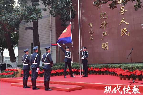 2021年1月10日是首個“中國人民警察節(jié)”,南京市公安局隆重舉行升警旗儀式。1月10日上午8時20分,在莊嚴的《中國人民警察警歌》樂曲聲中,警旗冉冉升起。南京市副市長、江蘇省公安廳副廳長、市公安局局長常和平,市公安局黨委班子成員、機關(guān)南北院各單位主要負責(zé)同志和功模民警代表參加儀式。