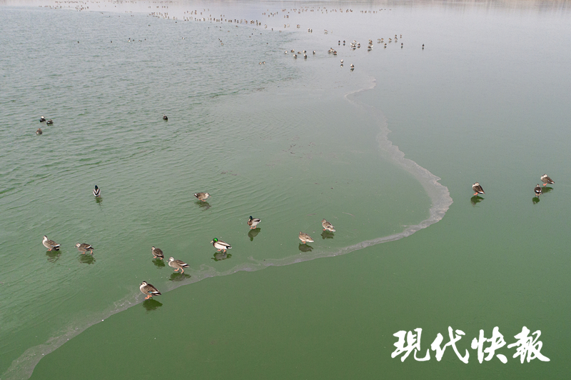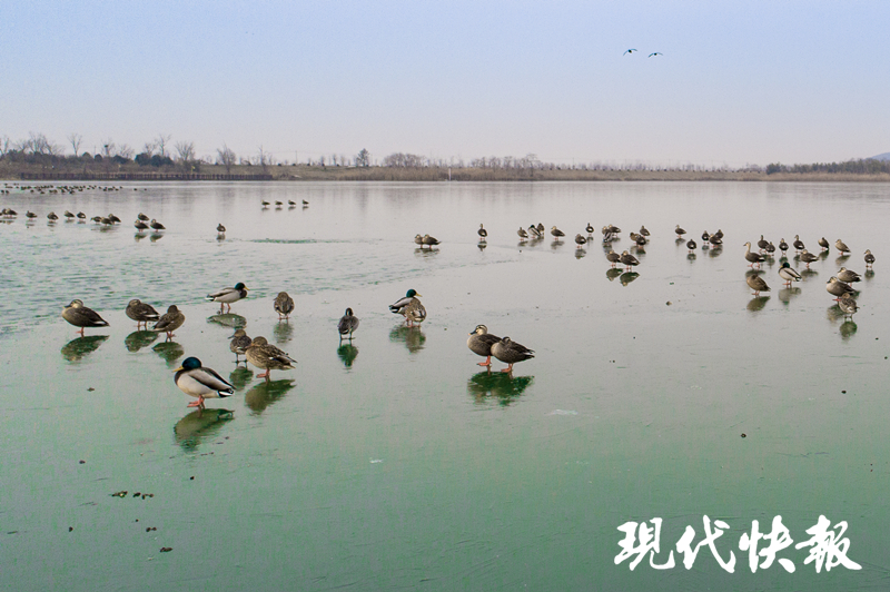 (通訊員 王維 記者 曹德偉)隨著氣溫持續(xù)走低,鎮(zhèn)江句容赤山湖湖面開始大面積結(jié)冰,野鴨與鷺鳥等水鳥的活動(dòng)水域也覆蓋了一層薄薄的冰面。