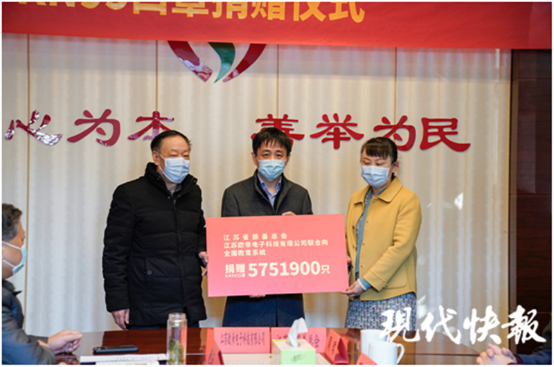 △江蘇省慈善總會與歐帝科技聯(lián)合向全國教育系統(tǒng)捐贈口罩5751900只