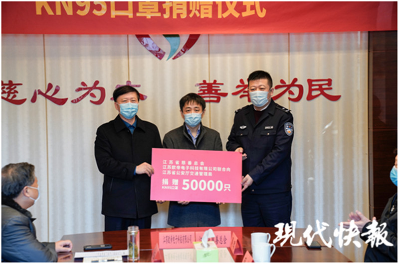 (通訊員 陳園園 記者 徐蘇寧)“育德善行,共抗疫情”。1月20日,江蘇省慈善總會與一家愛心企業(yè)聯(lián)合向教育、公安、環(huán)衛(wèi)系統(tǒng)捐贈KN95口罩儀式在江蘇省慈善總會舉行。向全國教育系統(tǒng)捐贈口罩5751900只、向江蘇省公安廳交警總隊捐贈口罩5萬只、向南京市鼓樓區(qū)環(huán)衛(wèi)所捐贈口罩5萬只,用于支持各系統(tǒng)的疫情防控工作。此次捐贈口罩總價值約877萬元。