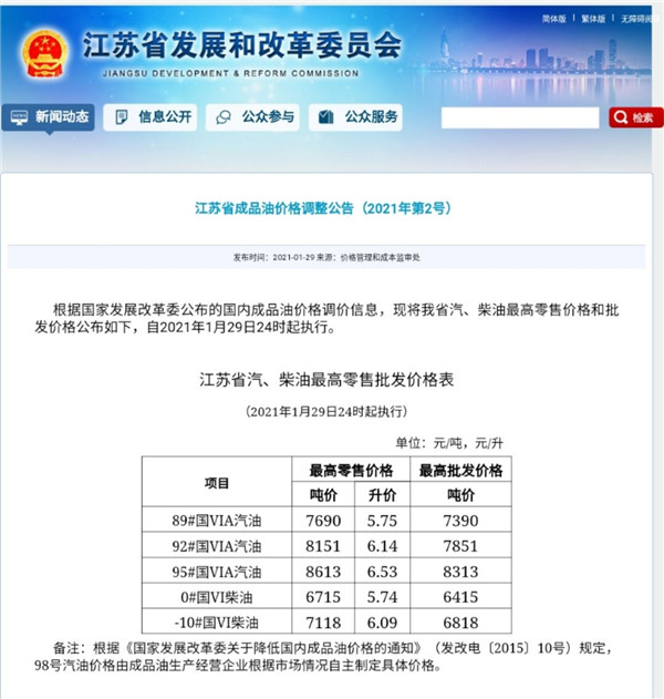 根據(jù)江蘇省發(fā)改委的調(diào)價通知,江蘇92號汽油6.14元/升,95號汽油6.53元/升,0號柴油5.74元/升。據(jù)悉,本次調(diào)價是進入2021年后的第二次上調(diào),也是現(xiàn)行調(diào)價機制自2013年春天執(zhí)行以來,油價歷史性的完成了“六連漲”。截至本次調(diào)價,2021年國內(nèi)成品油零售價共上調(diào)兩次,汽柴油零售價每噸累計上調(diào)260元/噸、250元/噸。