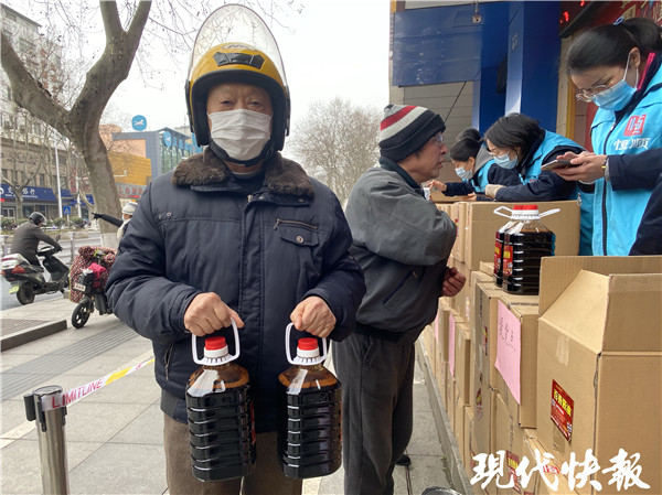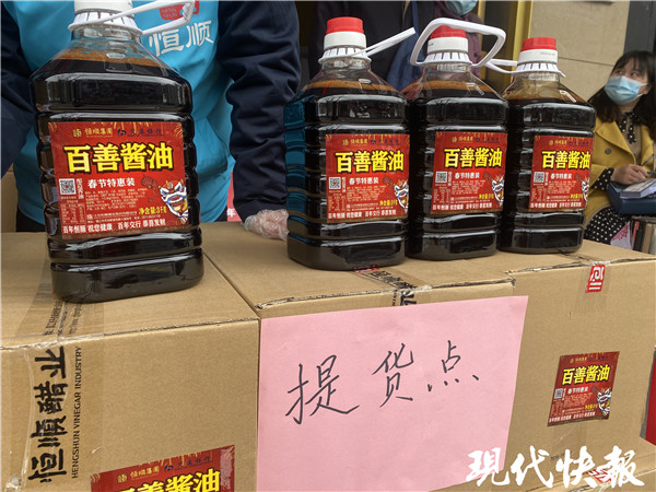 (記者 曹德偉 文/攝)“您好,請(qǐng)出示您的訂單尾號(hào)及您的手機(jī)號(hào)碼。”2月5日上午,在鎮(zhèn)江恒順商場(chǎng)大市口店門前,前來(lái)提貨的邱阿姨按照工作人員指示,領(lǐng)取到了自己提前網(wǎng)上下單購(gòu)買的兩桶醬油。“不像以前要排很久的隊(duì),這樣線上打醬油方便多了!”邱阿姨樂(lè)呵呵地告訴記者。辦齊年貨笑聲甜,打好醬油等過(guò)年。今年恒順首次將打醬油從線下搬到線上,獲得了市民們的一致好評(píng),既保留了年味,又衛(wèi)生安全。