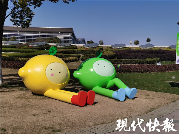 廣場上,可愛的卡通寶寶還擺出各種不同的POSE,有的在唱歌,有的坐在草地上曬太陽,引來游人拍照。