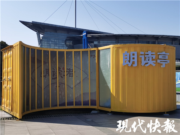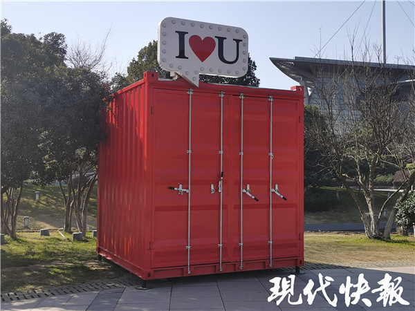 在開闊的廣場上,創(chuàng)意集裝箱每個都別具一格,青春拍立得、演播室、朗讀亭,功能不一。不少集裝箱是江寧大學(xué)城內(nèi)的高校主題箱,比如我愛南航、無影南醫(yī)等。