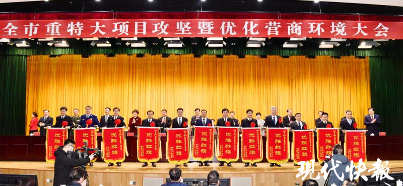 會(huì)議通報(bào)表?yè)P(yáng)了2020年度全市重特大項(xiàng)目攻堅(jiān)優(yōu)秀縣區(qū)、優(yōu)秀單位、招商尖兵、服務(wù)標(biāo)兵、優(yōu)化營(yíng)商環(huán)境工作先進(jìn)單位、年度經(jīng)濟(jì)人物、50強(qiáng)企業(yè)、高成長(zhǎng)型企業(yè)、應(yīng)稅開(kāi)票銷售首次超50億元工業(yè)企業(yè)、金融支持制造業(yè)發(fā)展突出貢獻(xiàn)單位、市長(zhǎng)質(zhì)量獎(jiǎng)獎(jiǎng)獲獎(jiǎng)企業(yè),并為部分獲獎(jiǎng)單位和個(gè)人頒獎(jiǎng)。