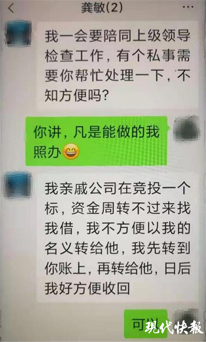 通過(guò)以后,這位“龔書(shū)記”對(duì)于女士稱(chēng),自己正在跟上級(jí)領(lǐng)導(dǎo)在外面開(kāi)會(huì),有個(gè)急事需要于女士幫忙,并且需要替其保密。“龔書(shū)記”告訴于女士,“我親戚在招標(biāo)急需資金周轉(zhuǎn),我不方便直接出面,我把錢(qián)轉(zhuǎn)給你,你作為中間人將錢(qián)借給他,這樣我日后方便收回。”并讓于女士提供銀行卡號(hào)。基于對(duì)“龔書(shū)記”的信任,于女士沒(méi)有猶豫便答應(yīng)了下來(lái)。