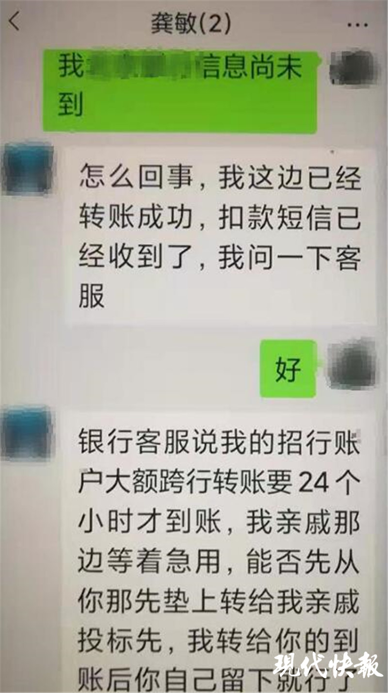 于女士對(duì)其說(shuō)暫時(shí)存折里只有5萬(wàn)元。“龔書(shū)記”便說(shuō)先將5萬(wàn)元轉(zhuǎn)給其親戚,剩余的只能明天才能轉(zhuǎn)給其親戚。沒(méi)過(guò)多久,“龔書(shū)記”又發(fā)來(lái)信息,稱(chēng)其親戚資金缺口較大,讓于女士趕緊想辦法將余下的錢(qián)轉(zhuǎn)給其親戚。于女士這才意識(shí)到不對(duì),于是打電話聯(lián)系龔書(shū)記,發(fā)現(xiàn)被騙。