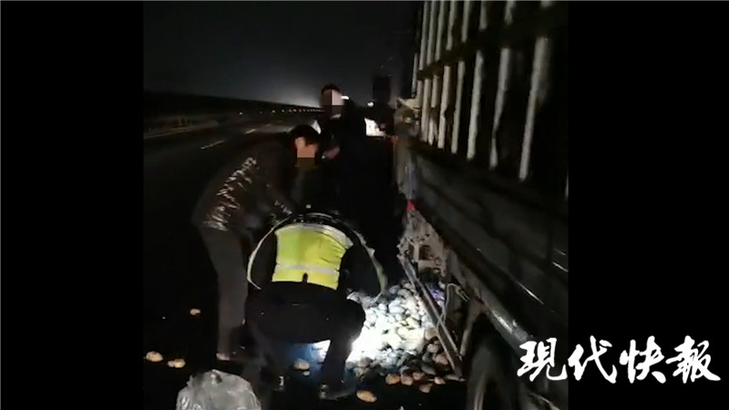 高速上飛來一個(gè)煙頭 把一車生土豆變成“烤土豆”