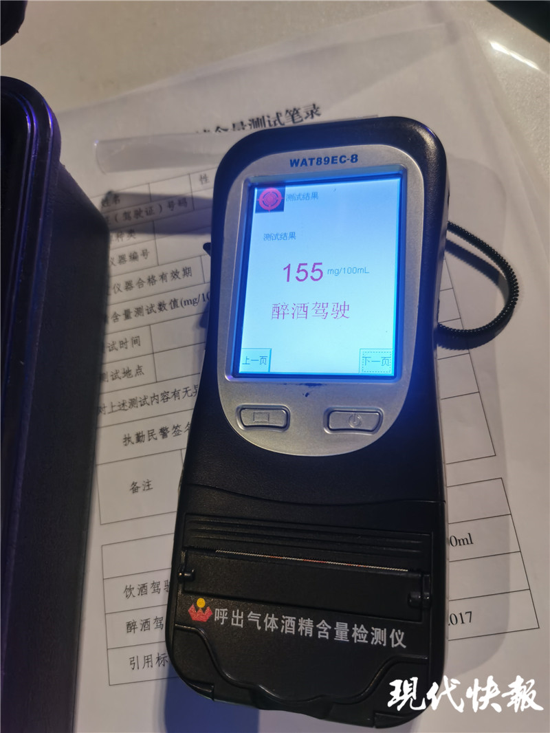 現(xiàn)代快報(bào)記者了解到,2021年3月7日晚上9點(diǎn)40分左右,南京市公安局特警支隊(duì)巡防卡口大隊(duì)馬東查報(bào)站與交警四大隊(duì)在云錦路附近開展夜間聯(lián)合清查時(shí),一輛轎車打著雙閃緩緩駛來,形跡可疑。駕駛員發(fā)現(xiàn)民警在查酒駕,便開車駛?cè)敫浇成虉龅耐\噲?,民警立即上前攔截。駕駛員沒有停車,并加速闖入停車場,民警快速上前追趕,車輛在進(jìn)入停車場二樓時(shí)被前方車輛堵住,駕駛員被民警控制。民警聞到車內(nèi)一股很濃的酒味,隨后民警將駕駛員帶離車輛。經(jīng)呼吸式酒精測試,結(jié)果為155mg/100ml,屬于醉酒駕駛機(jī)動(dòng)車。