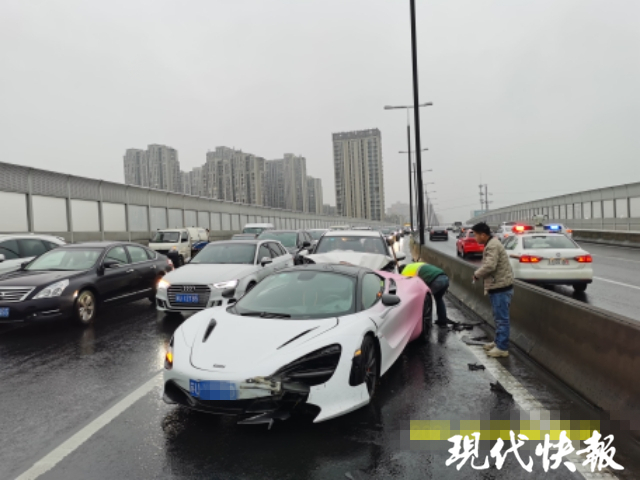 3月9日早高峰,蘇州高新區(qū)交警大隊(duì)楓橋中隊(duì)接到110報(bào)警稱(chēng),在太湖大道高架寒山橋附近,發(fā)生一起蘇U牌照邁凱倫轎車(chē)與蘇E牌照越野車(chē)相撞的交通事故。