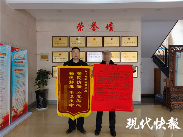 3月15日上午,丹陽(yáng)市云陽(yáng)街道九房村居民馬某興沖沖地來(lái)到丹陽(yáng)市公安局南環(huán)路派出所,向民警蔡科平遞上一面寫(xiě)有“警民情深不忘初心 排憂解難牢記使命”16個(gè)大字的錦旗,感激道;“謝謝民警同志,圓了我的心愿……”