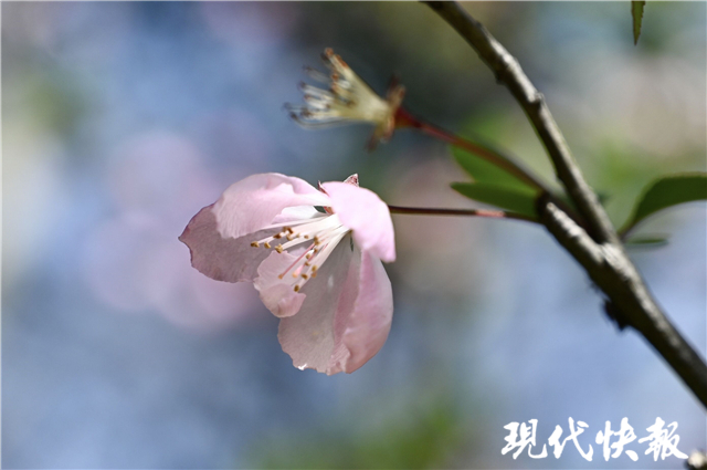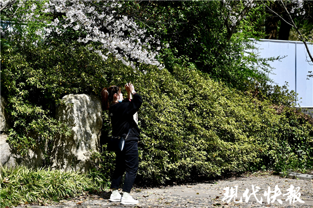 相較前幾日陰沉沉的天空,周一藍天也如約上線。在純凈的藍天映襯下,春日的綠意融融、百花爛漫,更多了幾分清新與詩意。雞鳴寺路看櫻花、莫愁湖看海棠、玄武湖看郁金香…… 雖然是工作日,這些景點的游客依舊不少。