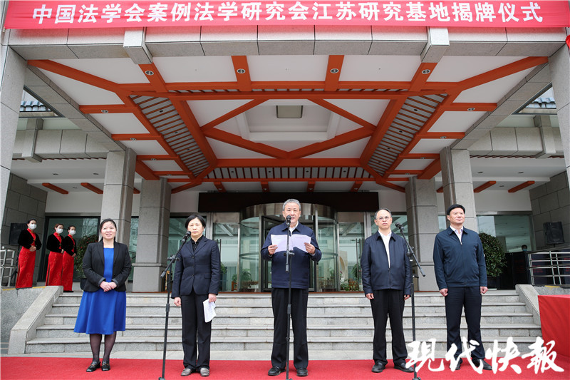 現(xiàn)代快報記者了解到,省法院黨組成員、副院長劉嬡珍主持揭牌儀式,中國法學(xué)會案例法學(xué)研究會秘書長梁欣,省法院黨組成員、政治部主任孫效增,以及基地成員單位代表出席揭牌儀式。
