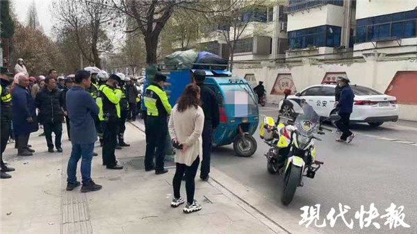 現(xiàn)代快報(bào)記者了解到,3月29日上午10時許,快遞小哥高某為了抓緊送貨,駕駛電動三輪車行駛至阜寧縣阜城街道城河路與勝利路交叉路口時,不小心與騎電動車的單某發(fā)生碰撞。