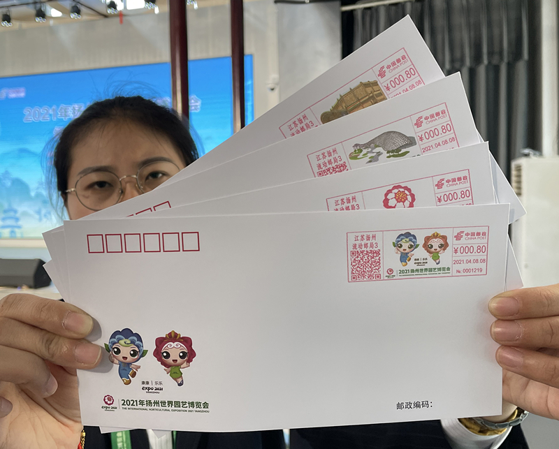 (記者 莊劍翔)4月8日,2021年揚州世界園藝博覽會開幕。當天下午,《2021年揚州世界園藝博覽會》紀念郵資明信片在世園會非遺館首次亮相。
