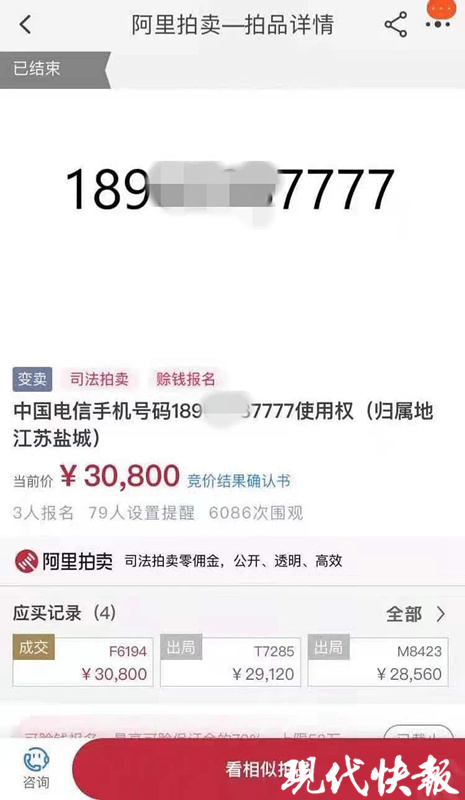 于是,承辦法官立即與當(dāng)?shù)氐碾娦胚\(yùn)營商核實(shí)確認(rèn),并快速啟動查封與評估拍賣程序。最終,經(jīng)司法拍賣平臺公開拍賣,手機(jī)號碼最終以3.08萬元成交。拍賣中,共吸引6086人次圍觀。