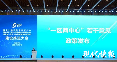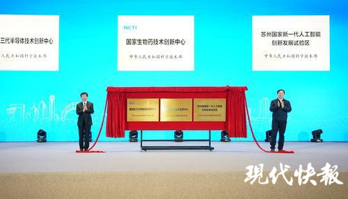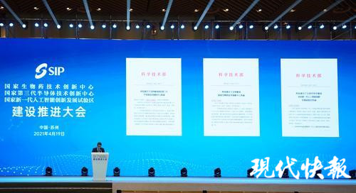 現(xiàn)場,宣讀了科技部批復(fù),支持江蘇省、蘇州市以及工業(yè)園區(qū)建設(shè)“一區(qū)兩中心”即國家生物藥技術(shù)創(chuàng)新中心、國家第三代半導(dǎo)體技術(shù)創(chuàng)新中心、蘇州國家新一代人工智能創(chuàng)新發(fā)展試驗(yàn)區(qū)。