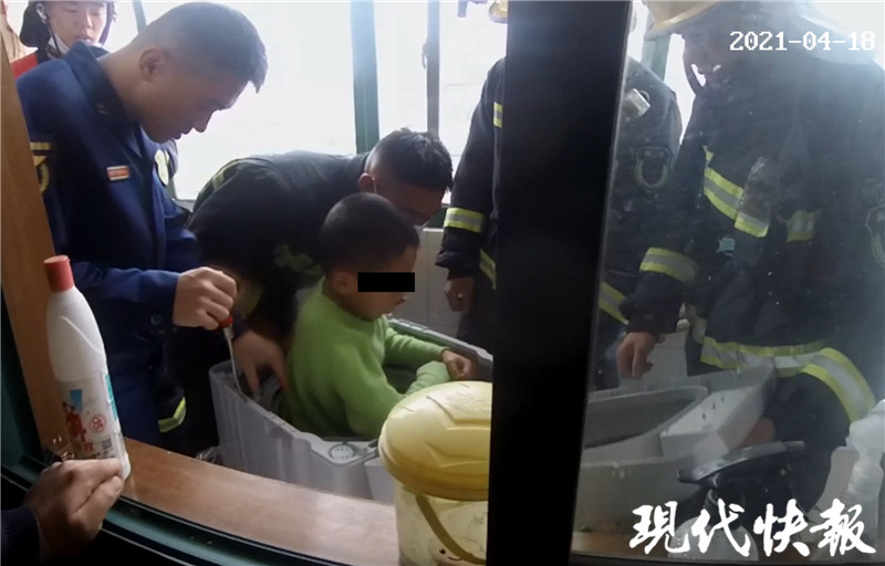 隨后民警聯(lián)系了消防部門,經(jīng)過一番操作,洗衣機被逐層拆卸,在此過程中,小男孩十分郁悶地看著警察和消防叔叔,可能連他自己也沒想到事情會發(fā)展成這樣。