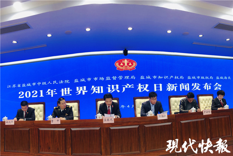 (記者 王菲 文/攝)保護(hù)知識(shí)產(chǎn)權(quán)就是保護(hù)創(chuàng)新!4月25日上午,鹽城市中級(jí)人民法院聯(lián)合市場(chǎng)監(jiān)管局、知識(shí)產(chǎn)權(quán)局、版權(quán)局和海關(guān),舉行了2021年世界知識(shí)產(chǎn)權(quán)日新聞發(fā)布會(huì),公布了侵害作品信息網(wǎng)絡(luò)傳播權(quán)糾紛案和非法制造、銷售非法制造的注冊(cè)商標(biāo)標(biāo)識(shí)刑事犯罪案等知識(shí)產(chǎn)權(quán)司法保護(hù)十大典型案例。
