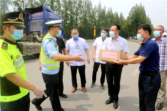 (孫宜方 彭雅楠 )8月10日上午,江蘇邳州市東高速出入口,這里負(fù)責(zé)防疫值勤的一線防疫人員正在緊張為過往車輛、行人登記、消毒、測量體溫,忙碌中迎來了一支特殊慰問團(tuán)隊,邳州市中醫(yī)院院長周亞東帶領(lǐng)相關(guān)科室負(fù)責(zé)人來到這里,為這里防疫執(zhí)勤的人員免費送來了幾百袋中藥防疫湯劑,用于執(zhí)勤人員疫情預(yù)防。當(dāng)天,周亞東院長一行還奔赴邳州港上公安檢查站,為那里的防控執(zhí)勤人員也送去了防疫中藥湯劑。