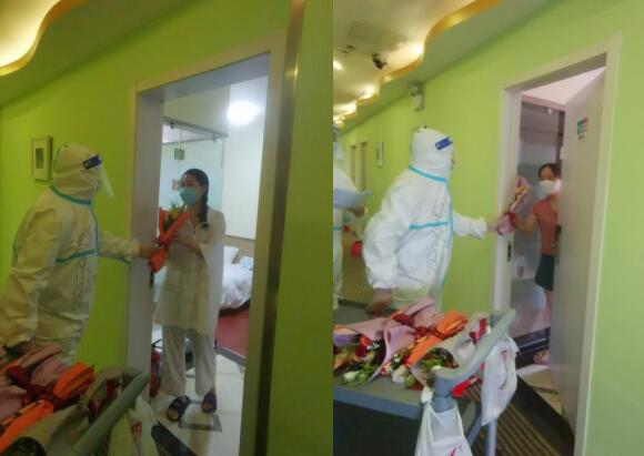 據(jù)了解,該點(diǎn)負(fù)責(zé)同志得知今天是七夕情人節(jié),他們說,“鮮花代表著最美好的祝愿,希望在這個(gè)特殊的日子里,能夠通過這樣的方式帶給她們溫暖。”于是,他們緊急聯(lián)系退役軍人志愿服務(wù)社會(huì)組織去采購鮮花到將鮮花送到隔離女士們手中僅僅只花了2個(gè)小時(shí), 這也充分展示了軍人的速度。