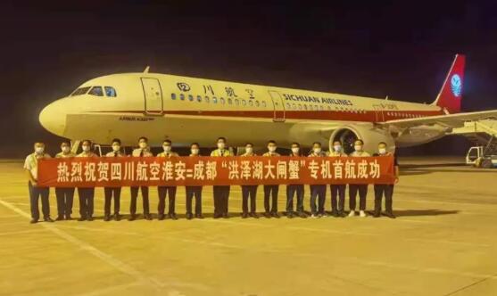 淮安=成都“洪澤湖大閘蟹”專機(jī)順利首航!