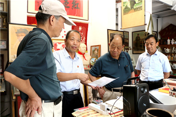 魏方剛送走一批參觀者,又迎來了邳州市原政協(xié)副主席、邳州文化研究會名譽主席劉彤、邳州市原政協(xié)副主席、邳州文化研究會常務(wù)副會長劉漢超、邳州市文化研究會副會長孫宜方、邳州市環(huán)保局原副局長張守軍、邳州文化研究會理事曹兆民等邳州市老領(lǐng)導(dǎo)和文化研究人員前來考察。劉彤等老領(lǐng)導(dǎo)和紅色文化研究人員參觀后,被魏方一個普通的工作人員,幾十年如一日,熱愛紅色文化、宣傳紅色文化,自費投資近百萬元興辦紅色文化館的精神所感動,他們當(dāng)即商定,這期邳州文化刊物《邳州文化》拿出一定版面,重點宣傳介紹邳州紅色文化收藏館,宣傳紅色藏品、展現(xiàn)百年黨史。