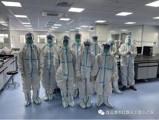 市紅旗義工愛心之家聯(lián)合連云港醫(yī)諾云檢實驗室共同組織李家良、蘇德錦、孫暢、徐穎、王倩倩、王雯菲、潘強、張玉留等志愿者參與醫(yī)諾云檢實驗室疫情志愿服務。