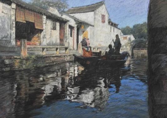 記者注意到,展廳中的粉畫作品主題各異,有描繪江南水鄉(xiāng)的,有描繪人文風(fēng)情的,也有描繪人物肖像的,在一件件粉畫作品中,也不乏“油畫”色彩和表現(xiàn)手法。“粉畫與油畫作為‘近親’畫種,雖存在材料特質(zhì)之別,但在語言表達上卻并無巨大鴻溝。”參展畫家、海南省油畫學(xué)會副主席李愷告訴記者,他平時的創(chuàng)作還是以人物肖像為主,此次在展的作品也是他以妻子為原型的肖像作品,作為初次嘗試粉畫的油畫畫家,他也需要通過一次次調(diào)整、反復(fù)觀察將所繪對象表現(xiàn)出來。“二者雖在本質(zhì)上沒有太大差異,但在實際操作上還是會存在對不同材質(zhì)的掌握不夠熟練的問題。”他解釋道。