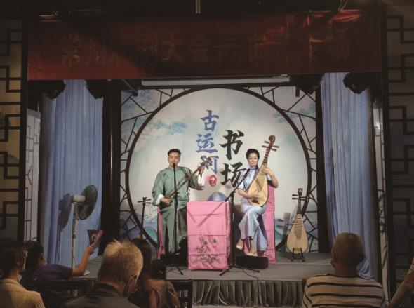 常州市曲藝團(tuán)團(tuán)長夏雪慧介紹,青果巷的古運(yùn)河書場是從去年9月開始成為常州市曲藝團(tuán)的定點(diǎn)表演場所的。她說,當(dāng)時為了響應(yīng)文旅融合發(fā)展的要求,青果巷開始深入挖掘傳統(tǒng)戲劇文化元素,積極融入現(xiàn)代多元藝術(shù)形式,在古運(yùn)河畔的江南建筑群落之間,打造“有歷史、有文化、有情懷、有記憶、有故事”的城市小劇場,引導(dǎo)更多市民和游客走進(jìn)來感受劇場魅力;而曲藝團(tuán)因?yàn)闀鴪鰩捉?jīng)變動,也想要一個穩(wěn)定的演出場地,于是雙方聯(lián)手開始了新嘗試。