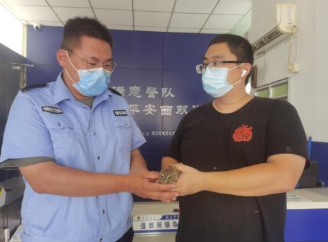 經(jīng)仔細檢查,值班民警董立超發(fā)現(xiàn)這只貓頭鷹還是幼鳥,從它右腳受傷的腳趾判斷,小家伙應(yīng)該是被樹杈夾傷后掉落窗臺,隨后與“家人”失散的。為了照顧它,大家忙找來食物和干凈的飲用水,并與縣林業(yè)部門工作人員取得聯(lián)系,請教正確的救助方法??紤]到小家伙受傷較輕,應(yīng)該讓它盡快回到大自然的懷抱,民警駕駛警車將其放生。