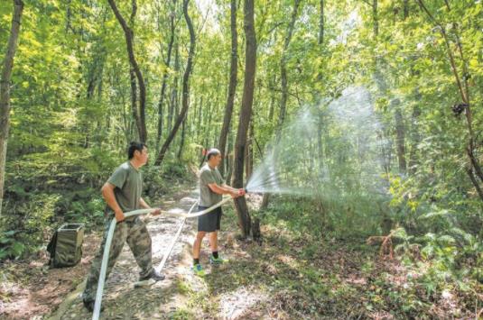 防火救援,補充水源是關(guān)鍵。在惠山北坡,森林消防隊員滿頭大汗地將150米長的水帶鋪設至一處蓄水池,通過山下的高揚程水泵源源不斷給蓄水池加水。“由于降雨量減少,蓄水池無法自主蓄水,必須人工加水,確保蓄水池水量保持在90%以上。”山北街道林業(yè)管理站站長羅星說,今年的森林防滅火任務尤為艱巨,不僅要加大巡查力度,還要每天對道路兩側(cè)林區(qū)進行灌溉,以增加濕度,降低森林火險等級,“這在前幾年是從未有過的”。