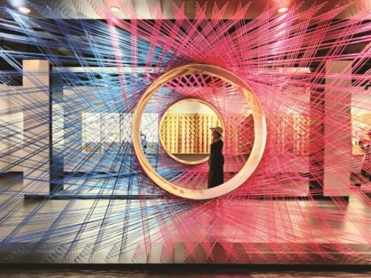 進入博物館,首先映入視野的是一幅巨型藝術品絨繡,這是以項目全景圖為題材的創(chuàng)作,整個作品由15位藝術工作者耗時半年創(chuàng)作而成。博物館劃分三個場館,分別是常設展館、臨展館、文創(chuàng)館。常設展館是全館的重中之重,演繹紡織的千年文化,濃縮了從古至今紡織行業(yè)的興衰史。該館圍繞“經緯藝術·時空之旅”為主題,與東華大學合作,歷時3年,通過實物征集、圖文編纂、文物復原、傳世收藏和全球尋寶等多種方式,搜集館藏品2000余件,講述了從纖維到紗線、從面料到服裝、從中華歷代服飾到各國傳統(tǒng)服飾、從紅星照耀百年紡織到科技進步文明演變的全方位紡織文化體驗。這里還特設了一個“常州館”,通過常州老照片、印染、繡花等常州紡織“記憶”,“情景再現(xiàn)”常州在中國近代紡織工業(yè)史上的重要地位和城市特色。