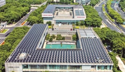 安裝了光伏面板的濱湖區(qū)行政中心屋頂在陽光下格外耀眼。為開發(fā)利用清潔能源,濱湖區(qū)機關(guān)事務(wù)管理局采用“自發(fā)自用、余電上網(wǎng)”的方式建設(shè)屋頂光伏項目,目前一期工程順利通過驗收,實現(xiàn)并網(wǎng)發(fā)電。該項目年發(fā)電量約80萬千瓦時,運營期間可節(jié)約標(biāo)準(zhǔn)煤約300噸,減少二氧化碳排放約750噸。同時,在項目建設(shè)過程中,兼顧屋頂防水功能,有效改善“屋頂”防水能力,節(jié)省了屋頂防水資金100余萬元。