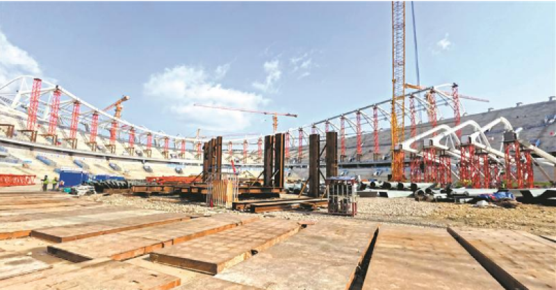 “在場地中央將鋼桁架拼裝好,緊固上漆后,整體吊裝,安裝到體育場外圈,航拍鏡頭中,體育場外圍一圈白色的膜骨架就是這樣一節(jié)節(jié)拼裝起來的?!眾W體中心二期項(xiàng)目負(fù)責(zé)人介紹。昨早,記者走進(jìn)無錫奧體中心主體育場工地,巨大的白色三角鋼桁架格外引人注目,工人們正在場地上忙碌著,“節(jié)前施工至膜骨架鋼結(jié)構(gòu)吊裝,節(jié)后復(fù)工正抓緊進(jìn)行機(jī)械設(shè)備檢查、材料準(zhǔn)備、人員安全教育,逐步向滿產(chǎn)進(jìn)發(fā)?!?/p>