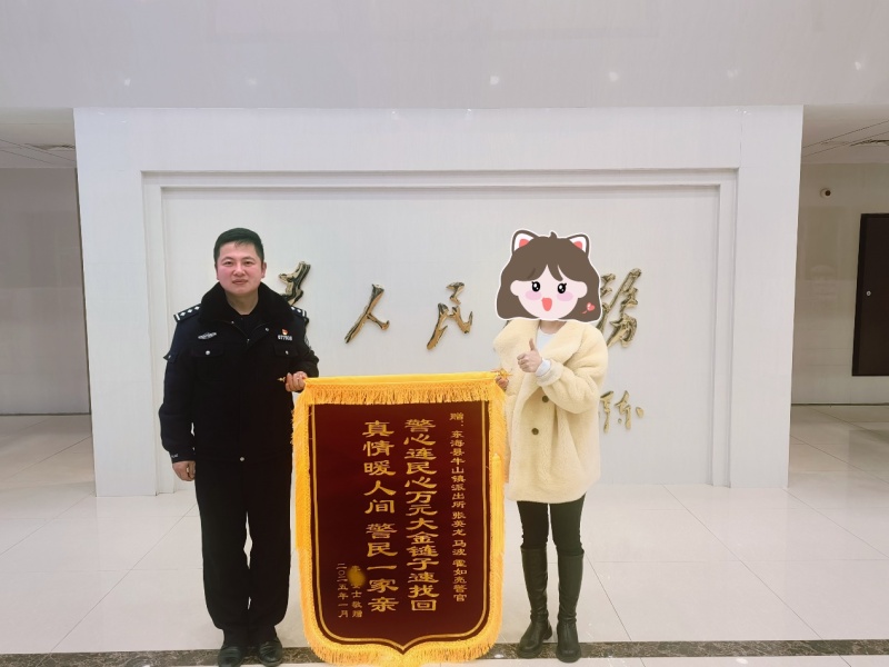 “感謝警察同志幫我找回了項(xiàng)鏈,大過年的,要是真的丟了,我這個年都過不好了!”近日,家住東??h牛山街道的李女士來到東??h公安局,將一面印有“警心連民心,萬元大金鏈子速找回;真情暖人間,警民一家親!”的錦旗送到民警張英龍的手中,對民警輔警積極為民辦實(shí)事、為民解憂的工作態(tài)度給予高度的贊揚(yáng)。