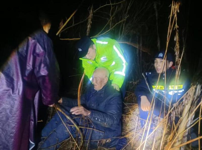 通過聯(lián)系村西邊大棚種植戶并調(diào)取棚邊監(jiān)控發(fā)現(xiàn),老人于13時許進入了村西邊毗鄰野山的田地。于是搜救人員重新調(diào)整搜救方向,對田地內(nèi)進行了近一個小時的全面搜索卻仍然不見老人的任何行跡。此時已近晚上7時30分,如果再不能尋得老人,那其處境將相當危險。此時警務團隊中的村民提到:在田地毗鄰的野山中有老人的祖墳,可以從山后的農(nóng)莊土路迂回進入,但路途較遠,為了與時間賽跑,民警王彭、袁奕東當機立斷,對搜救隊伍重新整編,由村中熟路的居民帶路分成三隊,穿樹林、進野山、超近“路”,到土路之上,沿著土路四處搜尋,終于在路邊的樹叢中找到了因力竭坐著休息老人,此時已經(jīng)19時50分,在確認老人身體無恙后,民警將其送回家中。