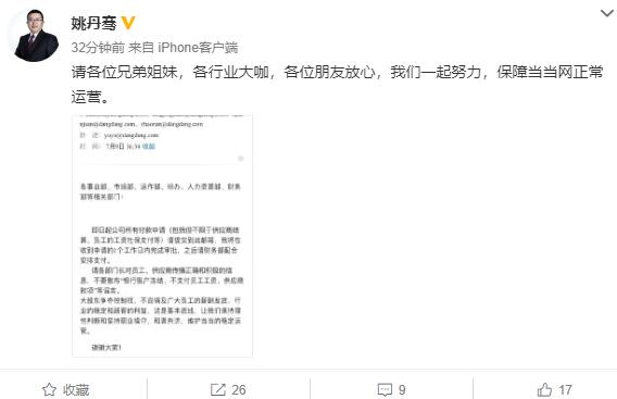 當(dāng)當(dāng)網(wǎng)代理CEO姚丹騫發(fā)聲:即日起公司付款申請由我審批