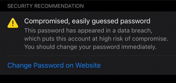 iOS 14中,蘋果進(jìn)一步對安全性升級,具體來說就是,系統(tǒng)對可能會(huì)遭泄的弱密碼發(fā)出警告。