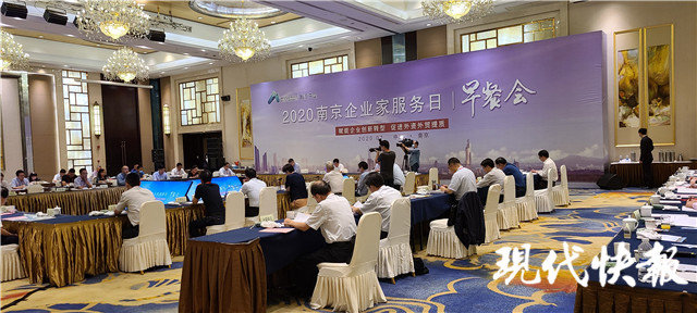 (記者 徐蘇寧 熊平平 文/攝)7月18日,在2020南京企業(yè)家服務(wù)日“智匯寧企”早餐會上,南京市商務(wù)局匯報(bào)當(dāng)前南京市外資外貿(mào)企業(yè)運(yùn)行情況。