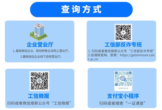 據(jù)悉,“一證通查”服務(wù)支持線上、線下兩種預(yù)約查詢(xún)渠道。在線上,用戶(hù)可以通過(guò)“工信微報(bào)”和“工信部反詐專(zhuān)班”微信公眾號(hào)、運(yùn)營(yíng)商網(wǎng)上營(yíng)業(yè)廳、中國(guó)信息通信研究院官方網(wǎng)站、支付寶“一證通查”小程序等線上渠道提交預(yù)約查詢(xún)申請(qǐng)。
