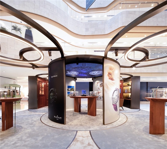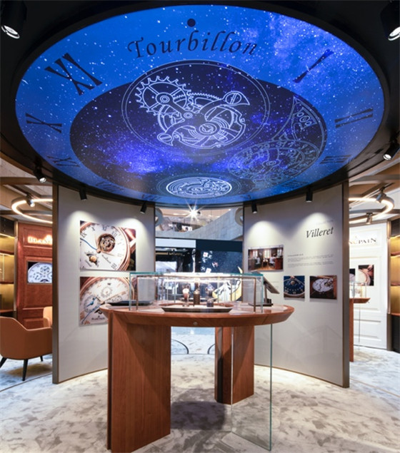 此次,得名于品牌誕生地Villeret小鎮(zhèn)的寶珀經(jīng)典 V系列腕表將品牌全新展臺(tái)形象帶到南京,攜全系列時(shí)計(jì)作品在南京地標(biāo)性高端購(gòu)物中心德基廣場(chǎng)首秀。流線型展臺(tái)設(shè)計(jì)根據(jù)品牌全新店面設(shè)計(jì)理念開(kāi)發(fā),于南京首次登場(chǎng)。深色橡木背板搭配香檳金金屬拉絲邊框,細(xì)節(jié)中將現(xiàn)代裝飾風(fēng)格與品牌經(jīng)典風(fēng)格元素巧妙融合。步入展廳柔軟舒適的淺色系地毯與棕色珍貴櫻桃木質(zhì)結(jié)構(gòu)六格窗設(shè)計(jì)構(gòu)成深淺呼應(yīng)、富有層次感的空間,打造舒適、奢華的賞表體驗(yàn)。展臺(tái)同時(shí)融合現(xiàn)代多媒體大屏展示系統(tǒng),將傳統(tǒng)典雅與現(xiàn)代摩登結(jié)合,豐富多樣的經(jīng)典時(shí)計(jì)目不暇接,來(lái)賓得以充分領(lǐng)略高級(jí)時(shí)計(jì)的風(fēng)采。
