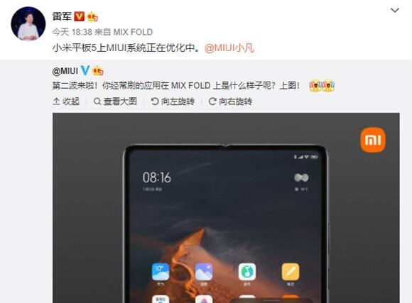 目前MIUI已為MIX FOLD推送更新,體驗有了大幅提升,小米平板上的MIUI系統(tǒng)也在持續(xù)優(yōu)化中。