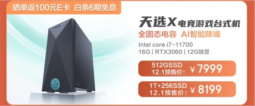 12月6日,華碩天選X高性能臺(tái)式電腦新品在京東商城正式開(kāi)售。此次,天選X高性能臺(tái)式電腦在處理器上進(jìn)行強(qiáng)化進(jìn)階,全面配備第十一代英特爾酷睿處理器,并有多種配置可選。其中,搭載英特爾酷睿i7-11700處理器,16GB內(nèi)存,512GB SSD固態(tài)雙硬盤(pán),以及RTX 3060獨(dú)立顯卡的組合,開(kāi)售驚喜價(jià)7999元。