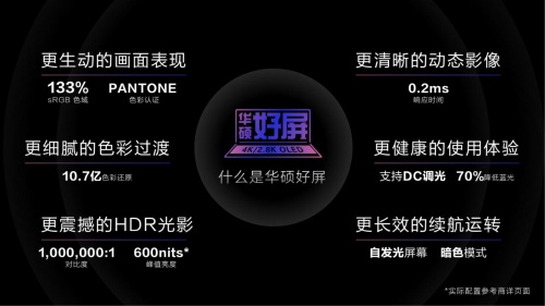 前方重點。靈耀Pro14運用2.8K OLED屏幕,16:10黃金比例,擁有100% DCI-P3廣色域、10.7億色彩顯示、1000000:1高對比度和600nits峰值亮度,并通過了PANTONE色彩認(rèn)證,逐臺精準(zhǔn)校色,精確到畫面細(xì)微之處,畫質(zhì)表現(xiàn)及屏幕觀感更佳,帶來旗艦級影音體驗,宅家一起追劇看電影,再也不擔(dān)心畫面灰蒙蒙,無法看清精彩的細(xì)節(jié)亮點。0.2ms極速響應(yīng)時間,高響應(yīng)不易卡頓,90Hz絲滑高刷,別去網(wǎng)吧啦,在家?guī)е鳷A一起上分!
