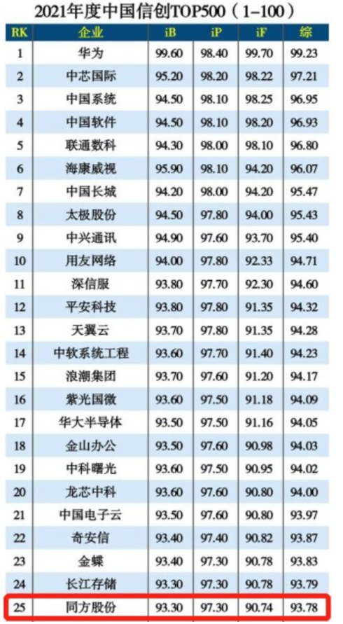 同方股份入選2021年度中國信創(chuàng)500強(qiáng) 數(shù)